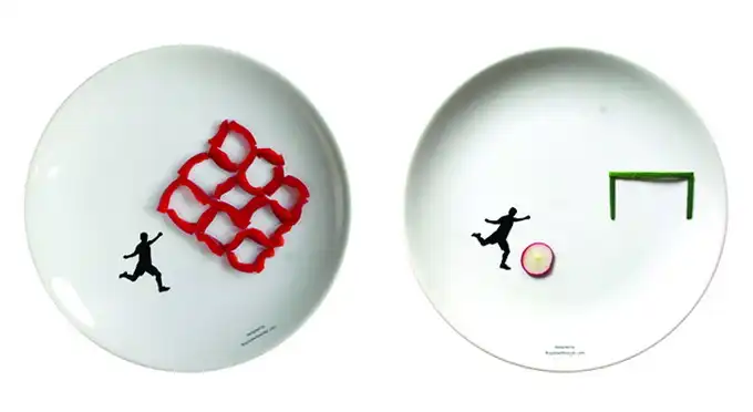 В прошлый раз у дизайнера Богуслава Сливинского (Boguslaw Sliwinski) это были тарелки с транспортом и с лицами. Сегодня - новая "спортивная" серия польского дизайнера. На этот раз он создает свои керамические тарелки, отталкиваясь от идеи, что еда должна быть забавной игрой.
