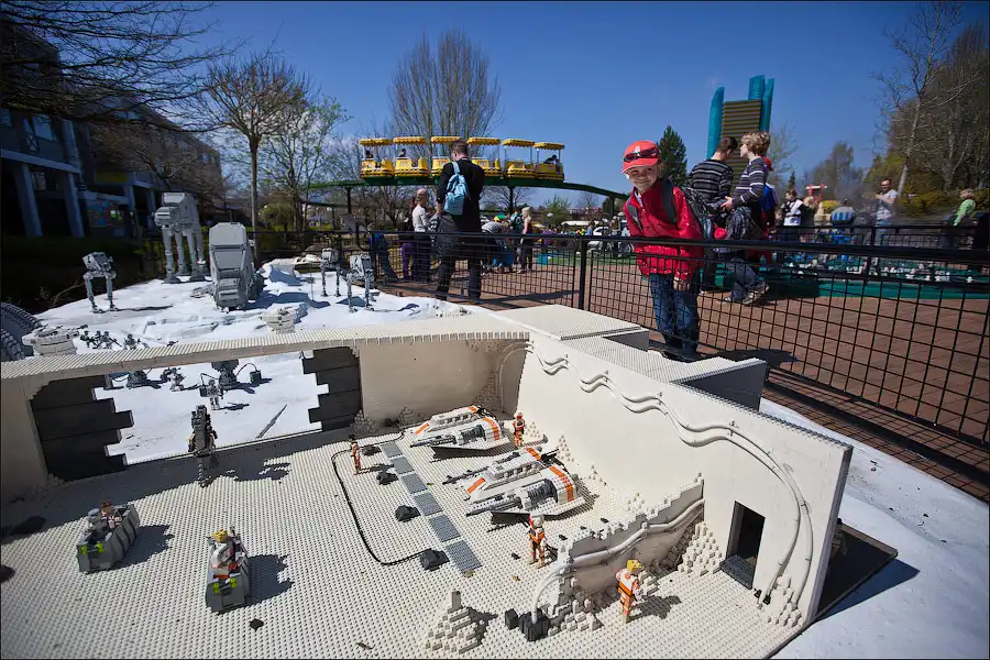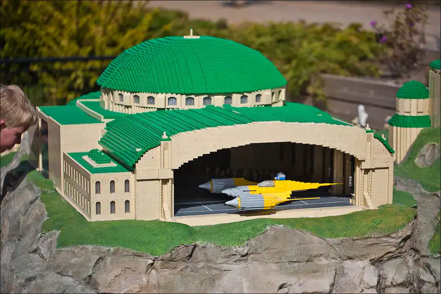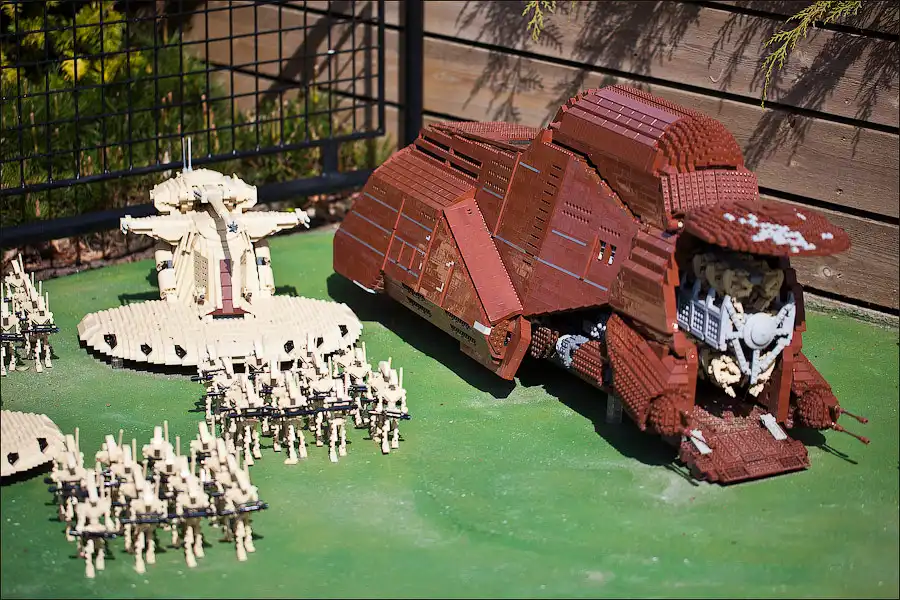 Попав на тематическую площадку датского Леголэнда, посвященную киноэпопее, я понял, что практически ничего не помню из сюжетной линии. Здесь воссозданы все ключевые сцены «Звездных Войн». Смоделированы планеты, фигурирующие в фильме, в том числе Набу, Кашиик, Мустафар, Татуин, Хот и Эндор. Построены тысячи фигурок дроидов, клонов, гунганов, эвоков и прочих обитателей. Десятки и сотни наземных и межзвездных боевых и транспортных космолетов. (автор)