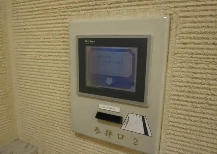 Посетитель достает пластиковую карту и вставляет ее в считывающее устройство.