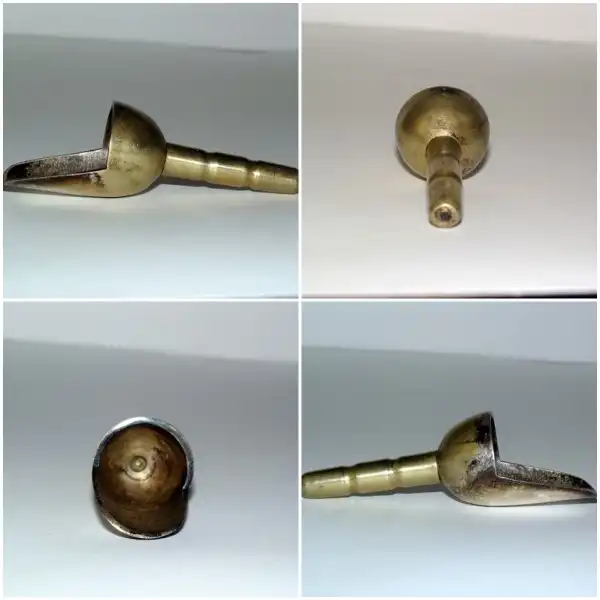 ИМХО явно видно что подвергалась неоднократным температурным воздействиям, на дивайс мало похоже (но как вариант модный древний водник), больше может что-то типа лампы киросинки, особенно учитывая походу остатки аля масла в ложечке в отверстии