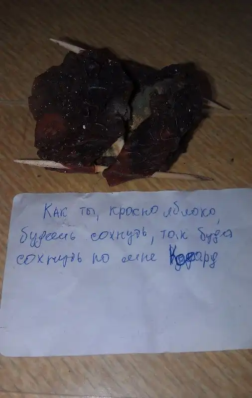 Изначально, как он понял, это было яблоко, разрезанное на две половины и скрепленное зубочистками.