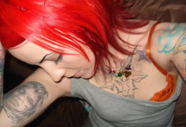 Попал я на профайл одной занимательной барышни и решил поделиться с вами фоточками из ее фотоальбома. Чего то я не понимаю в этой жизни, видимо. Вроде как симпатичная девушка. Но почему-то она нарисовала себе брови, выкрасила волосы в красный цвет и забила свое тело татуировками, одна из которых - морда Сатаны и три шестерки на груди. Как бы вы отнеслись к такой барышне? Мне стремно, почему-то - мало ли какие тараканы у нее в голове.