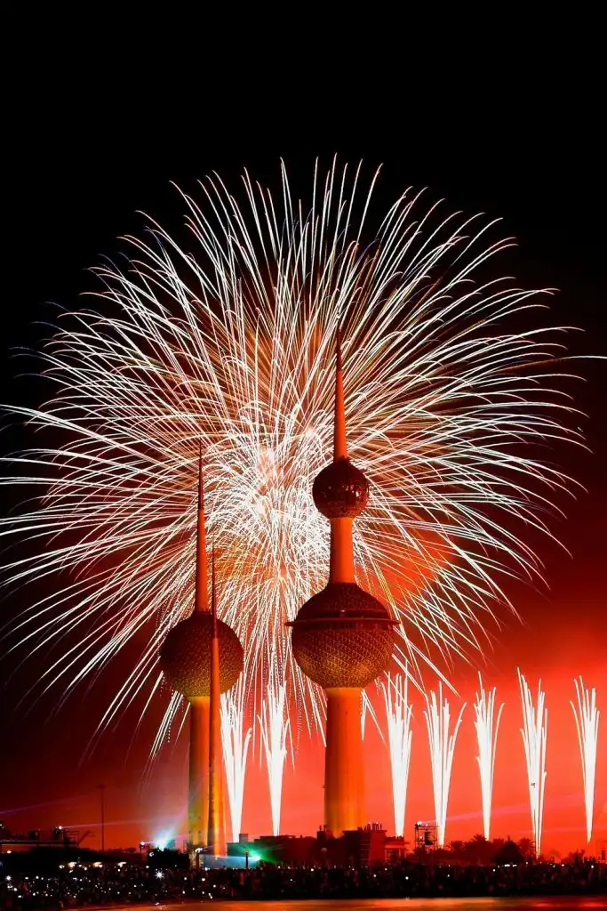 Грандиозный по масштабам фейерверк был запущен над Эль-Кувейтом 10 ноября, отмечали золотой юбилей конституции страны.