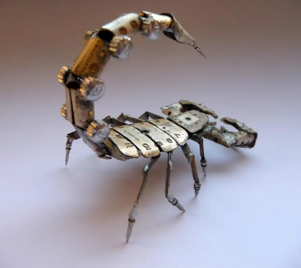 Для своих работ, Джастин использовал части часов (стрелки, шестеренки, обычные лампы накаливания и много другое. Каждая работа, будь то кулон, насекомое или членистоногое, занимает у мастера по несколько часов. С учетом того, что Джастин Гершенсон-Гейтс (Justin Gershenson-Gates) привык все доводить до конца, он никогда не оставляет работу недоделанной и все выполняет в один присест. В работе использует исключительно пайку и никакого клея. «Mechanical Mind» - действительно уникальная и неповторимая серия от известного ювелира.