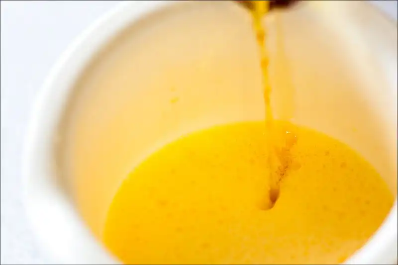 2. Вываливаем содержимое яиц в ёмкость и тщательно их взбиваем