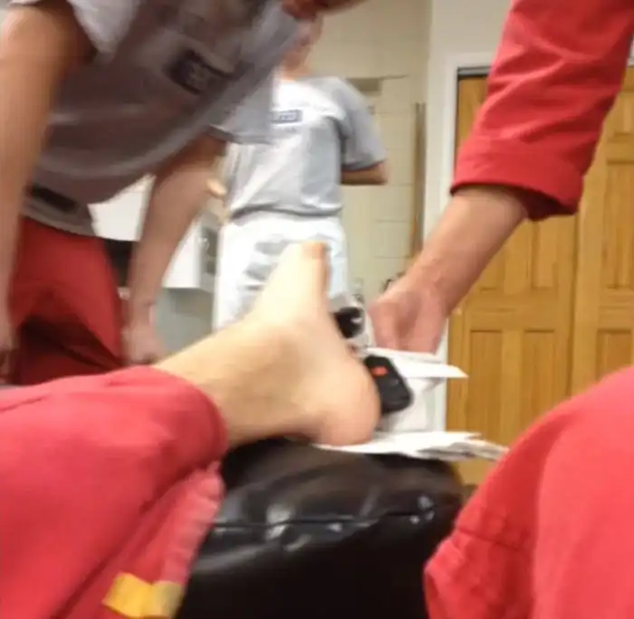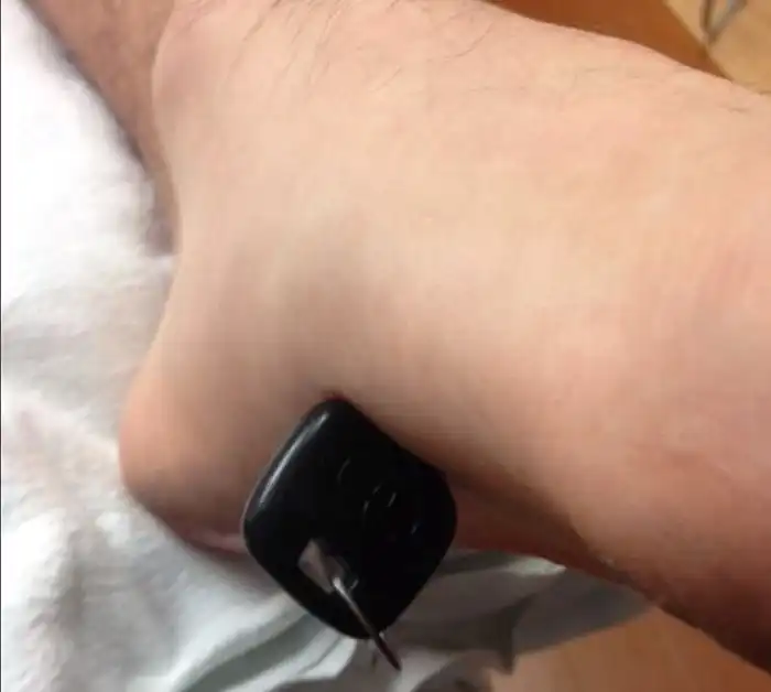 каратист со всего размаху напоролся на один из ключей своей ногой.