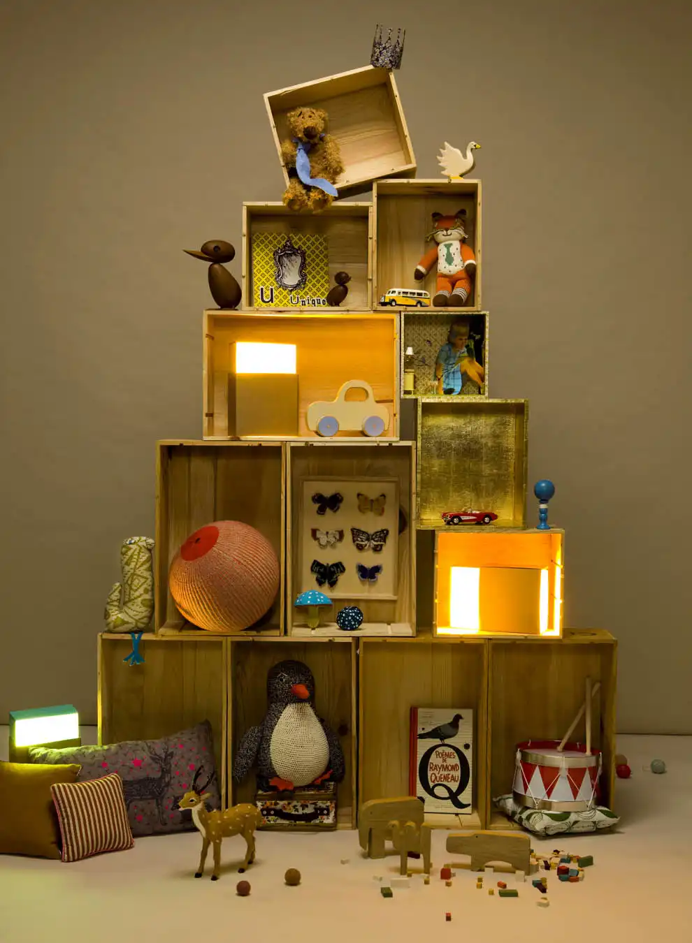 Имитация елки висящими игрушками.