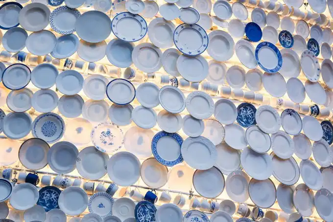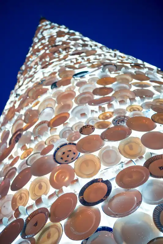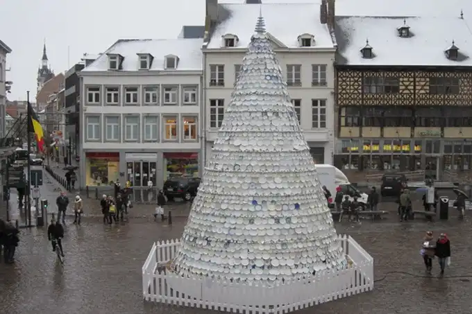 Дизайнеры студии Mooz Индж Вэнлуид и Штефан Фанберген (Inge Vanluyd and Stefan Vanbergen) разработали проект в сотрудничестве с местными жителями и воплотили в жизнь концепт, символизирующий традиционные Рождественские мысли о проведении времени за столом. Более 3,000 жителей пожертвовали примерно 5,000 тарелок, чтобы создать елку из бело-синего фарфора.