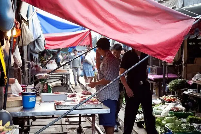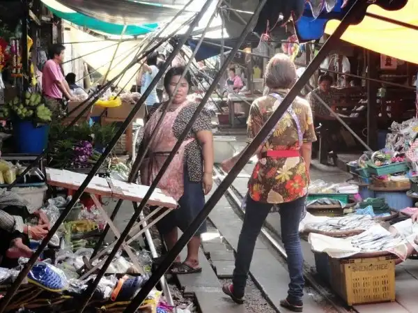 Как только поезд проезжает, торговцы снова поправляют лотки и продукты, и жизнь на рынке продолжается, как будто ничего и не произошло. В конце концов, рынок был здесь еще задолго до того, как через него проложили железную дорогу в 1905 году.