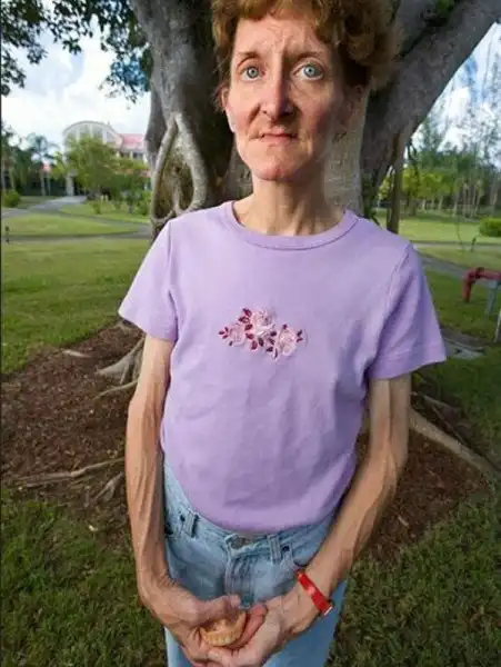 Кэйти, 48 лет, Syracuse, New York, держит в руках собственную челюсть. Она болеет анорексией 33 года и совсем недавно весила почти 31 кг.