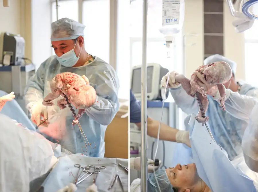 Операция проходит очень быстро. Настолько, что я чуть не проморгала момент, когда малыша доставали из мамы.
