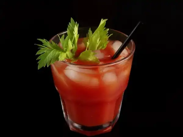 Налей в стеклянную часть шейкера: томатный сок 150 мл, водку 50 мл, табаско соус красный 3 капли и ворчестер соус 3 капли