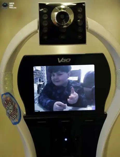 Девон Кэрроу посещает уроки при помощи робота телеприсутствия VGo, Уэст-Сенека, штат Нью-Йорк, США.