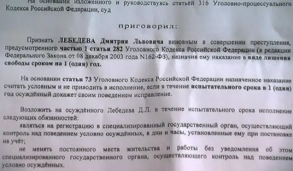 Это не шутка – в распоряжении редакции "Росбалта" есть копия приговора, комментарии следователя и прочие доказательные аргументы из этого удивительного, но очень тихого процесса. Вот фотокопия из приговора – обратите внимание, что именно вменяется подследственному.