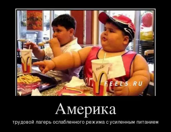 В Америке очень много толстых людей. В России вряд ли все так плохо с ожирением, как в Штатах, потому, что наша еда не настолько ужасна и не направлена на то, чтобы постоянно нашпиговывать детей и взрослых супержирами, огромным количеством сахара и углеводов. Быть толстым в Америке очень просто. Гораздо сложнее быть здоровым.