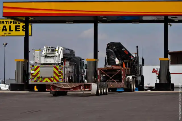 Во-вторых, баки располагаются с двух сторон грузовика, поэтому колонки оборудованы двумя шлангами, с двух сторон грузовика. В-третьих, имея трейлер длиной 16 метров (53 фута), трудно парковаться на обычной заправке, поэтому подъезд/выезд к таким заправочным колонкам делают широким, и по возможности, прямым, что существенно облегчает работу водителям.