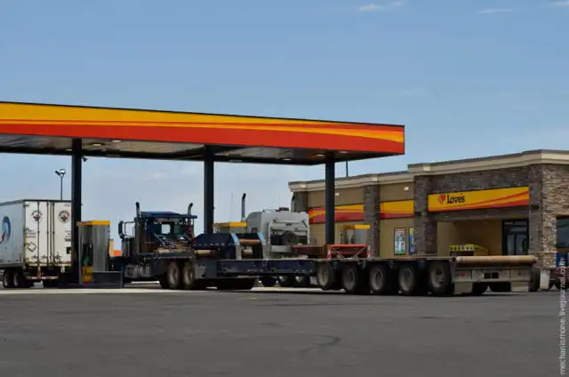 Большинство пит-стопов имеют сервисную линию, которая способна в короткий срок отремонтировать грузовик, к слову, сами дальнобойщики называют грузовик «риг».