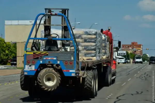 Другой параметр, за которым очень следят полицейские, но который не очень любят транспортные компании — это вес. Максимальный разрешенный лимит для двухосного прицепа, опирающегося на две оси тягача — 36 тонн, при большей нагрузке количество осей должно быть увеличено.