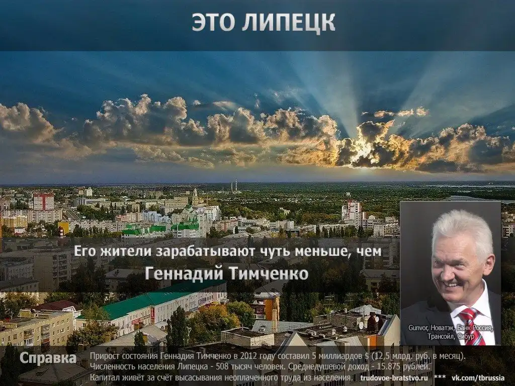 Интересный обзор некоторых городов нашей страны, в которых суммарный доход всего населения меньше прибыли одного олигарха, проживающего в нем.