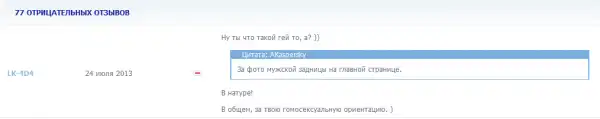 20948 78.140.12.51 LK-4D4 23 июля 2013 23:56 мне вот ваще пох, я тут ничего такого о себе не писал, и тем более что я гей. я хз с чего
