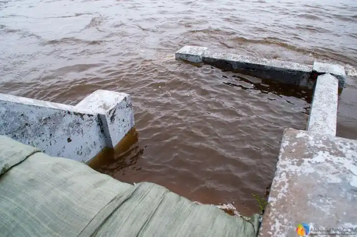 Еще один "проблемный" микрорайон, который при дальнейшем подъеме воды, по оценкам специалистов, рискует стать островом - это "Строитель". Тут двойная дамба, но первая из них, песочная, водой уже пройдена.