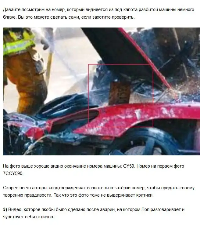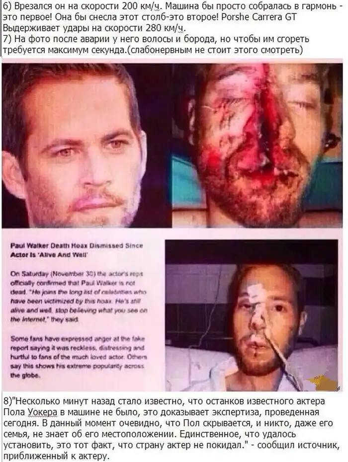 После того, как в сети появилась информация о том, что звезда фильмов "Форсаж" Пол Уокер погиб в ДТП, в этой истории начали появляться весьма странные факты о опровержения.