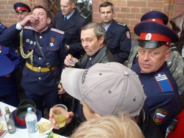 Эх, за Русь-то матушку, за Империю Российскую да как не накатить-то водочки православной казакам-то удалым!