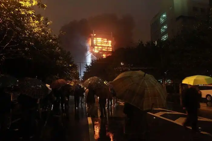 В южном китайском городе под названием Гуанчжоу пожарные почти полдня боролись с огнем в недостроенном небоскребе. Разгорелся пожал в 25-этажном здании примерно в 7 часов вечера, а сбить пламя удалось только к утру следующего дня.