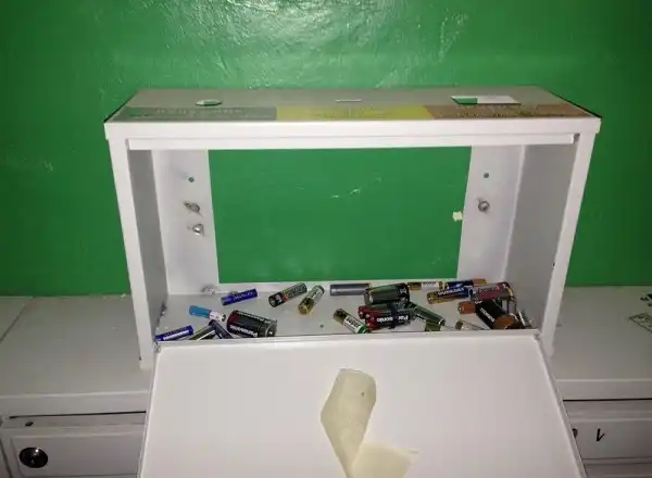 Просто забыли пластиковые маленькие ведра для каждого вида батареек внутрь шкафа поставить.