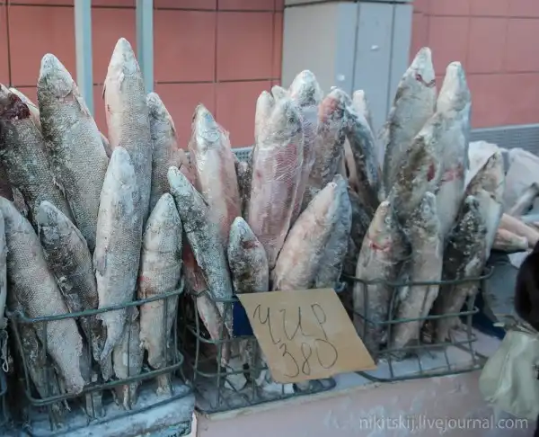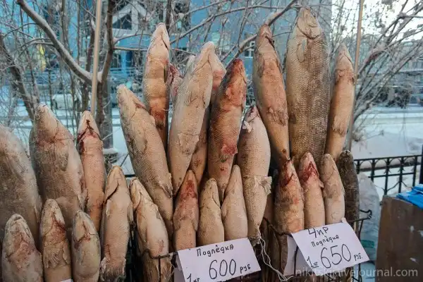 . В Якутске я накупил строганины у этого продавца, она сделала мне скидку в обмен на фото-) Кстати, даже в Якутии строганина стоит недешево, а в Москве она безумно дорога.