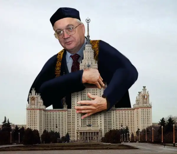 Это Садовничий В.А., пока еще ректор МГУ. Из своих почти 75 лет 22 года он "рулит" Московским университетом. За это время успел повесить в МГУ свой барельеф и добиться того, что университет вылетел из всех мировых рейтингов. Организовал десятки новых факультетов, наладил конвейер по выдаче дипломов и придумал несколько бесполезных мегапроектов, чтобы качать бабло из государства. Считает МГУ собственностью, которой распоряжается как хочет. «Душит» региональные вузы, проводя политику по закрытию или поглощению региональных олимпиад и диссоветов в пользу Москвы и Санкт-Петербурга. Узурпировал финансы и образование.