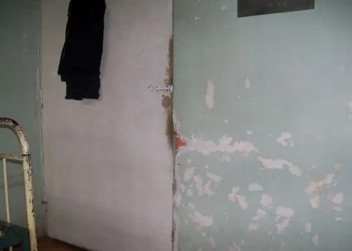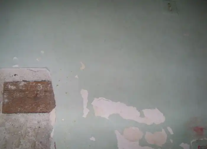 проступающая сквозь пробитую штукатурку опорная балка стены. неправда ли впечатляюще? :)