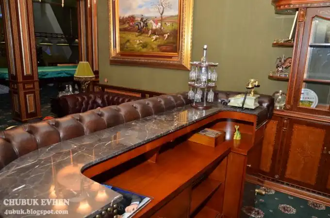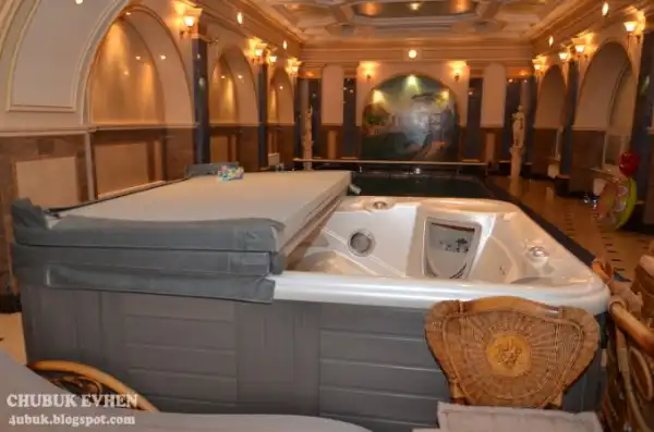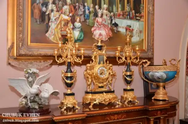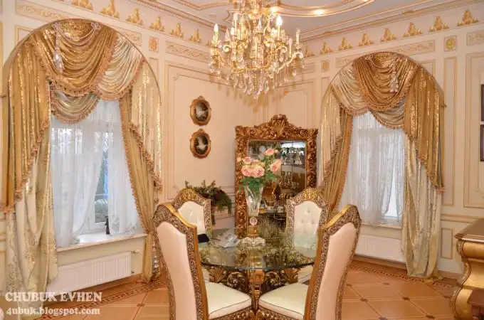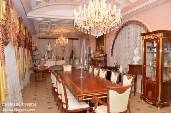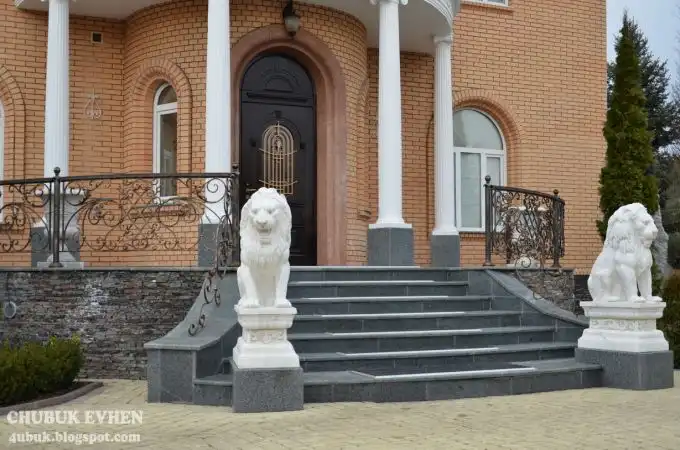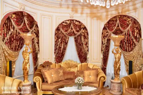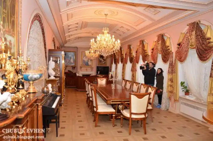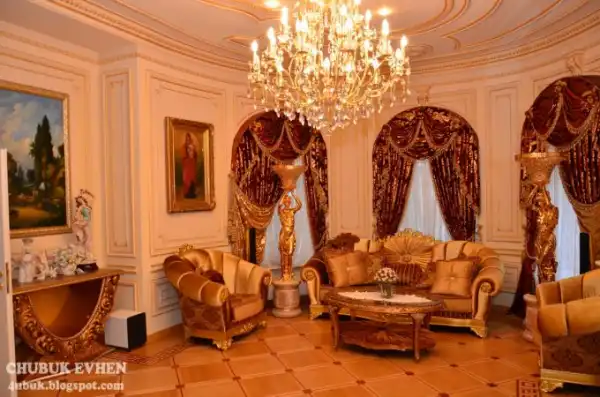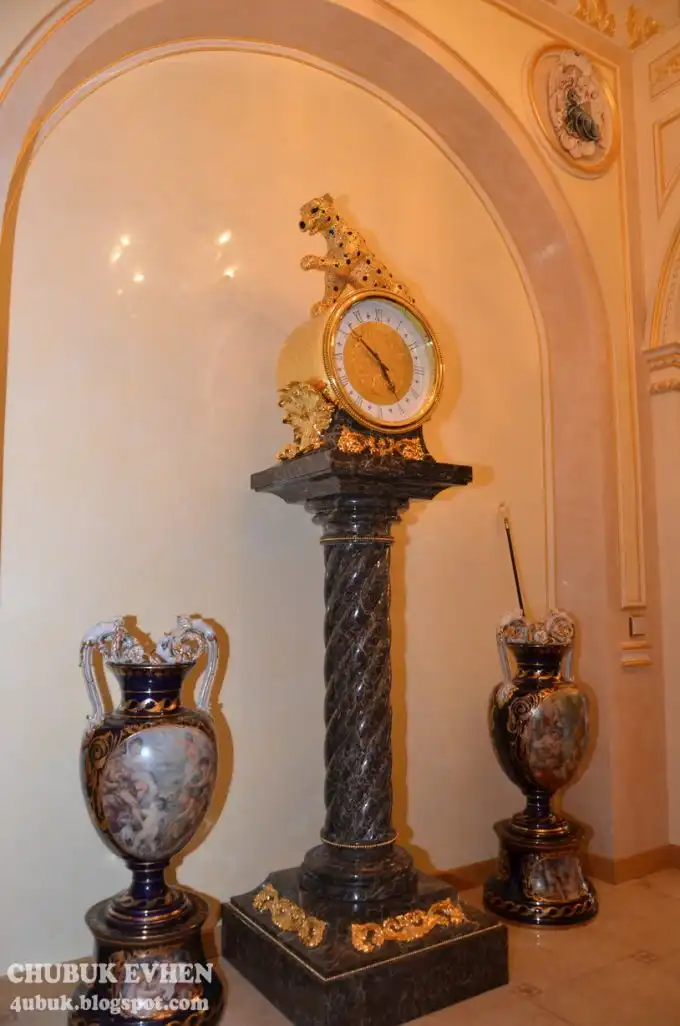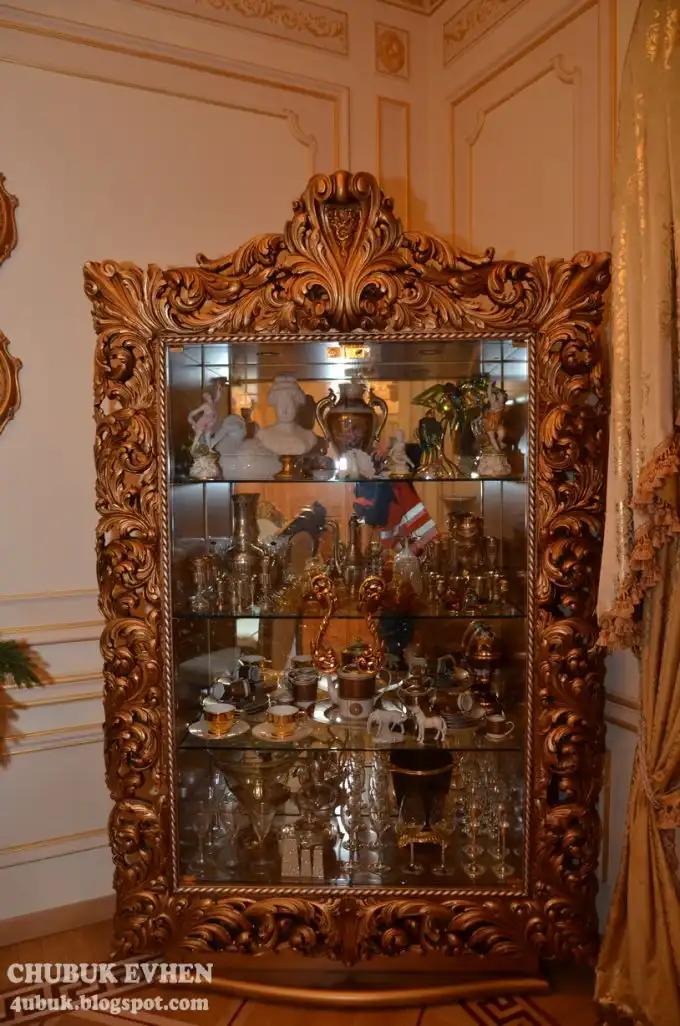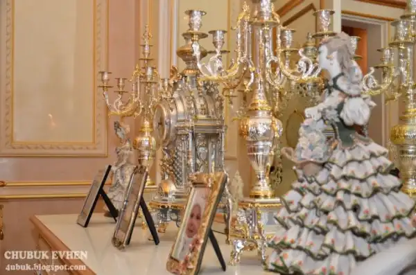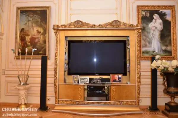 Особняк поражает роскошью, еще большей, чем в президентской резиденции. Начиная с ворот с инициалами Пшонки, голубятней, редкой породы деревьями, львами при входе в дом и заканчивая золотом и стразами внутри.
