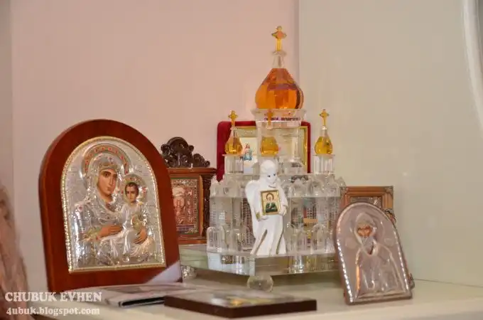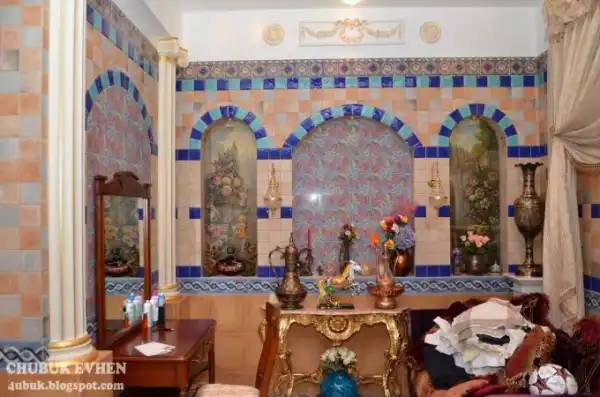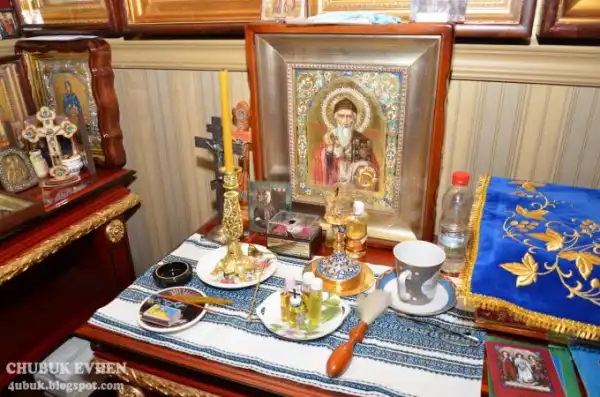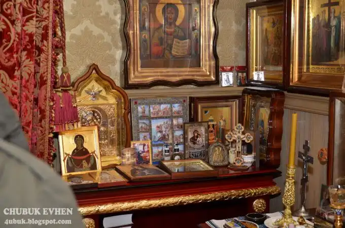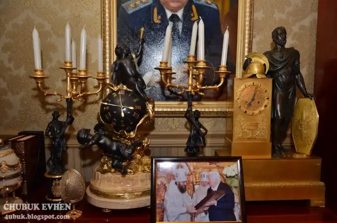 В каждой спальне дома - алтарь. Стены увешаны иконами, картинами, в частности портретами Пшонки и его жены в разных образах - Цезаря, Наполеона, княгини Ольги и российской императрицы Екатерины.