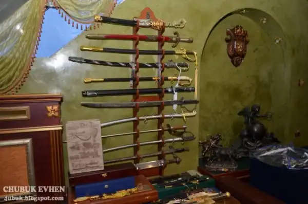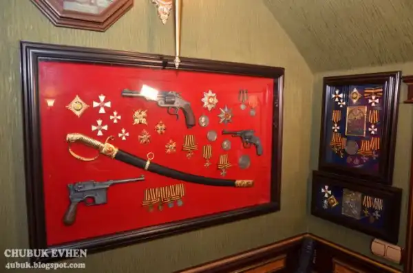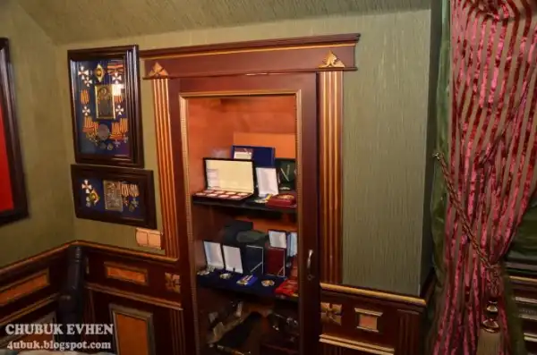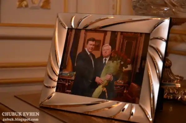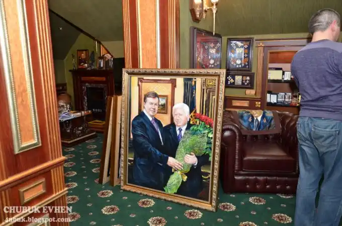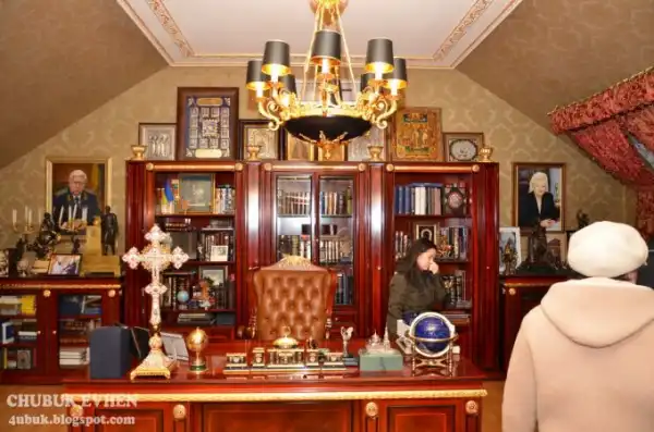 Резиденцию Виктора Пшонки окрестили Музеем коррупции. Древние иконы и картины, похищенные Евангелии, мощи Святых в кабинете, яйца Фаберже по всему дому, коллекция холодного оружия, многочисленные награды, портреты Пшонки и Януковича, а также много-много другого. Дальше без комментариев.