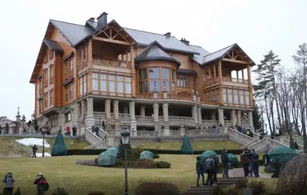 Резиденция Виктора Януковича - режимный объект, построенный на деньги украинских налогоплательщиков. Это сотни миллионов долларов. Сейчас он в бегах. Само поместье 137 га. Огромные здания, роскошь неимоверная. Ничего не разгромлено, ни одного стекла не разбито, все очень культурно. Охраны практически нет, но нет и погромов, и грабежей. Остались страусы, которые свободно разгуливают. Осталась огромная коллекция раритетных автомобилей и мотоциклов, которые стоят бешеных денег. Нашли запонки с драгоценными камнями. Журналисты телеканала ICTV сообщают, что среди прочего они нашли комнату, где гарант Конституции справлял естественные нужды. Легендарные унитазы действительно золотые, правда, не все, а только их нижняя часть. Нашли золотые гривны с лицом президента, золотые люстры, дорогущие ламбрекены, дорогущую мебель. Люди диву даются, когда все это видят.