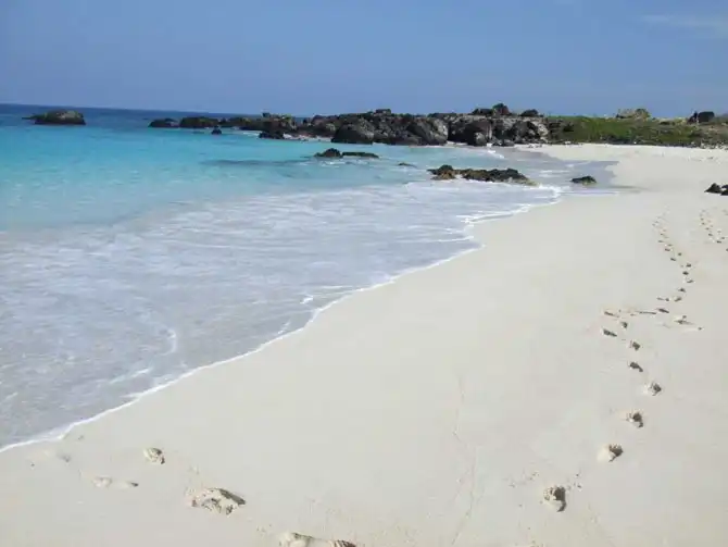 Этот пляж считается идеальным благодаря мелкому белому песку, спокойной воде, и окружающим пальмам.