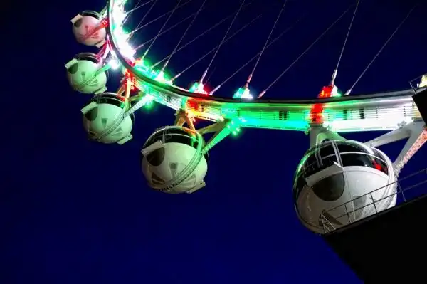 Полный оборот гигантское колесо совершает за полчаса. Билеты стоят 24,95 доллара днем и 34,95 - ночью.