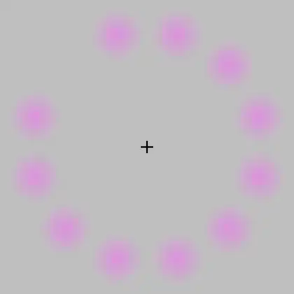 Вот статический кадр из гифки выше, который отображает реальность. Физически присутствуют только фиолетовые кружки. Зеленого нет ни на одном из кадров. Это ещё одно подтверждение нефизической природы цвета. Более того, когда мы видим цветные сны, глаза вообще закрыты.