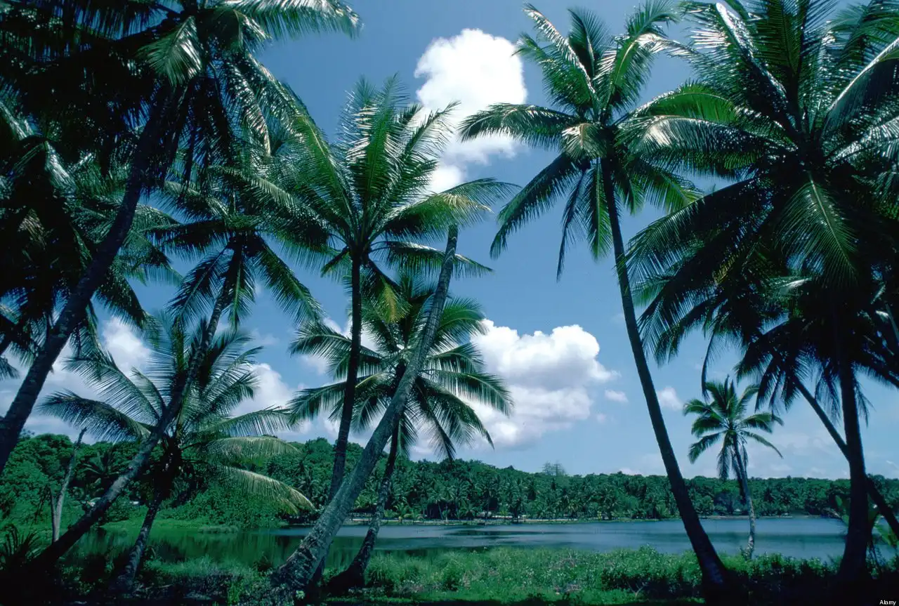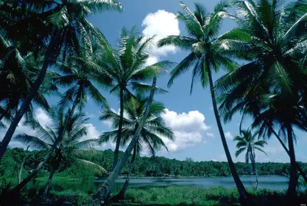 Остров окаймлен кольцевым валом коралловых рифов, отстоящим от берега на 150–300 м; за рифами начинается крутой подводный склон. На береговой низменности, шириной от 100 до 300, сосредоточены жилые и производственные постройки, находятся посадки кокосовых пальм, рощи пандануса. С моря эту низменность окаймляет узкий пляж из белого кораллового песка, а от внутренней части острова, представляющего собой ровное плато, ее отделяет вал из кораллового известняка, возвышающийся на 40–50 м над уровнем океана.
