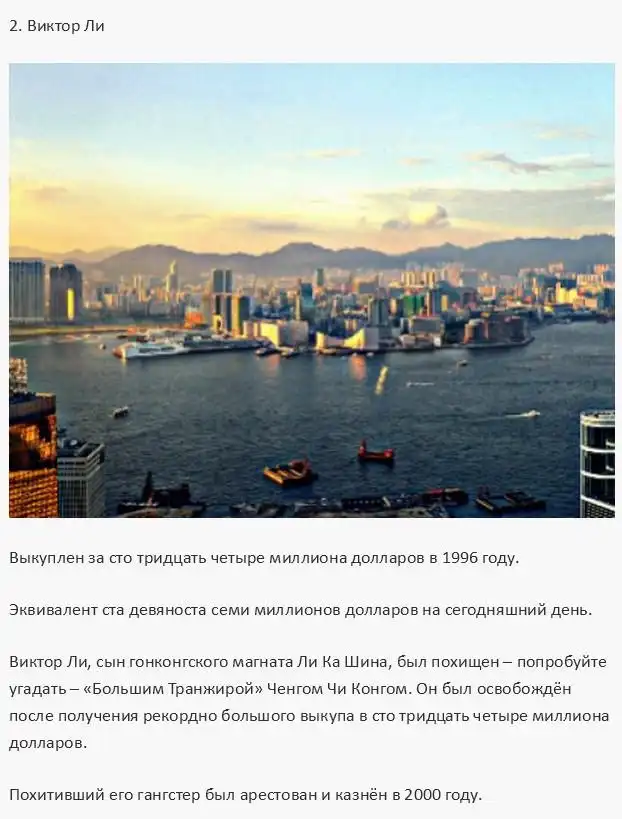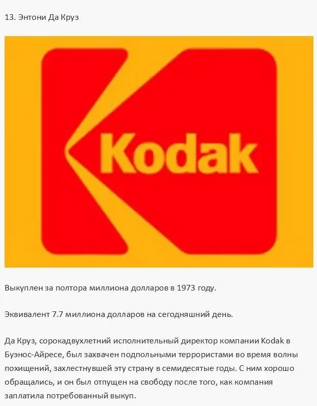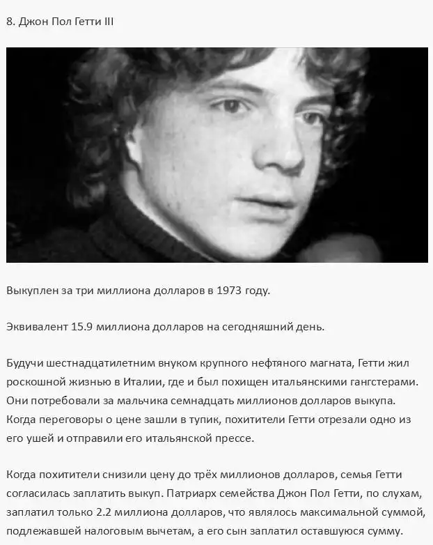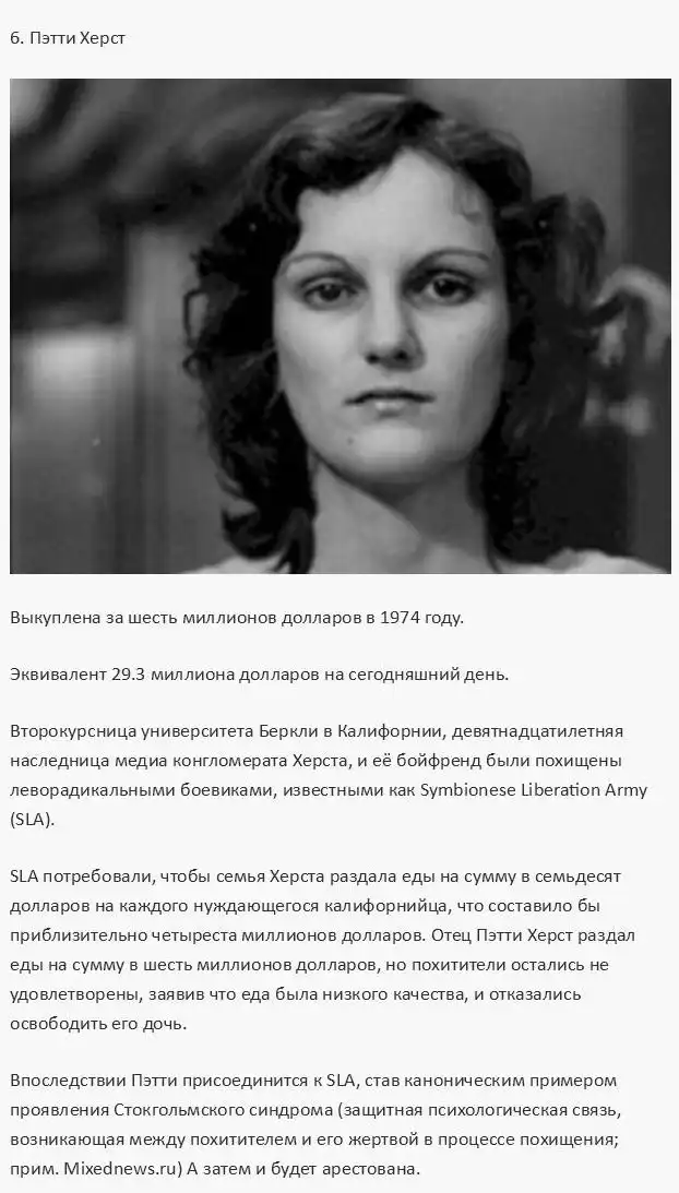 Похищения людей с целью выкупа - не редкость. Но в этом посте я собрал для вас информацию о самых громких и самых крупнейших выкупах в истории криминального мира.