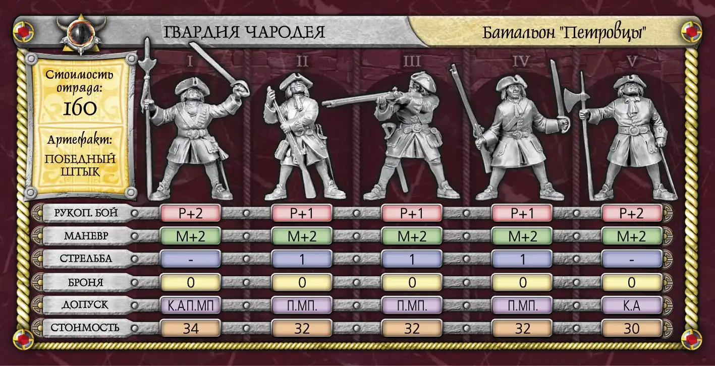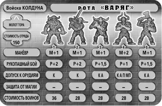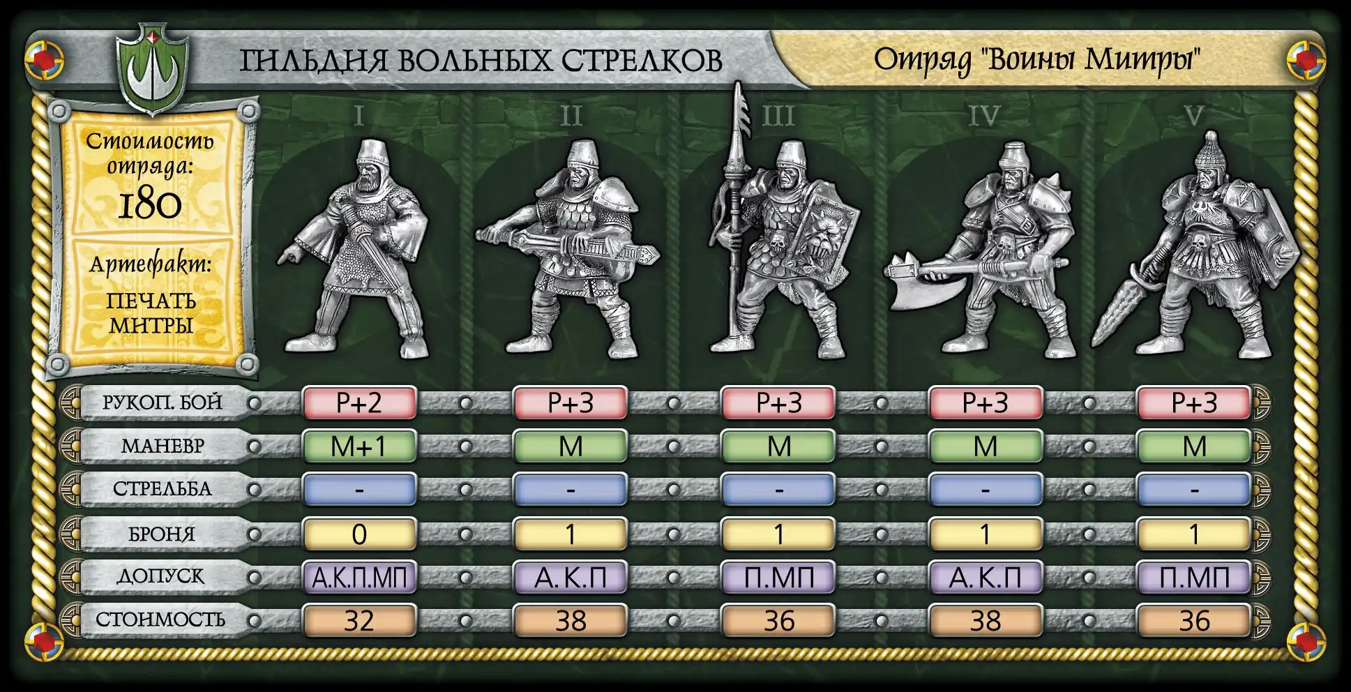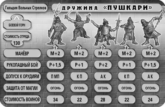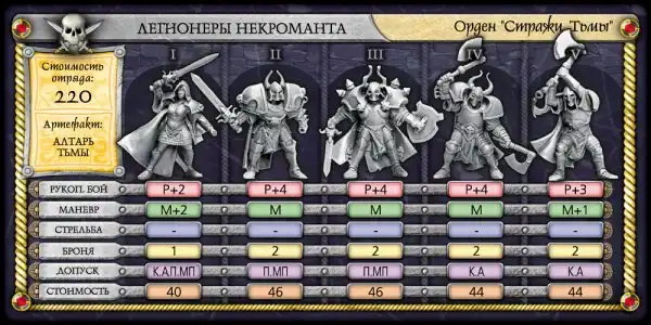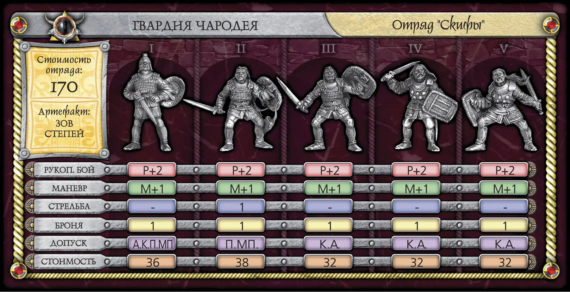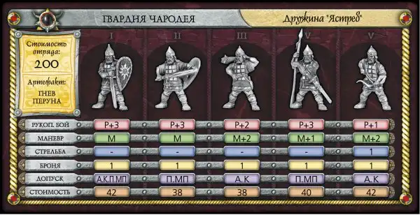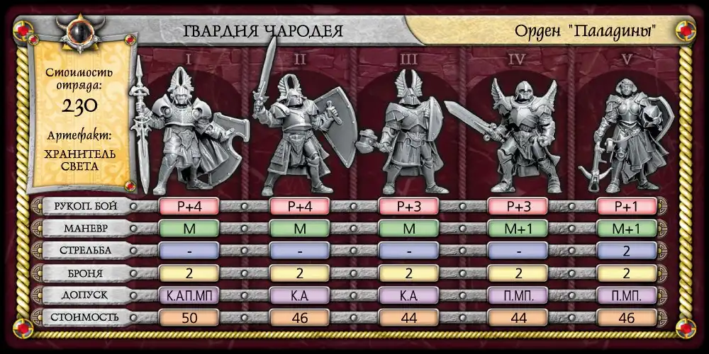 Каждый воин имеет допуск к типам орудий, защиту от магии, стоимость...