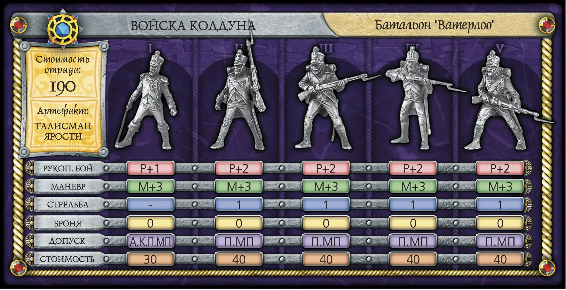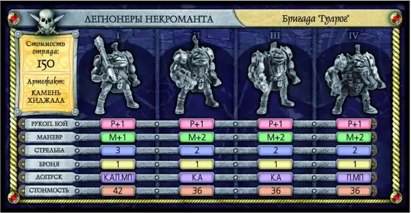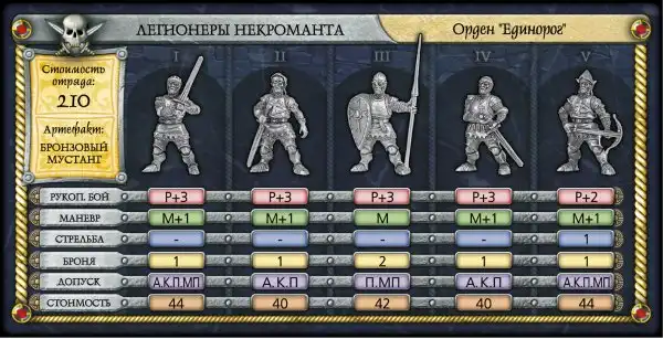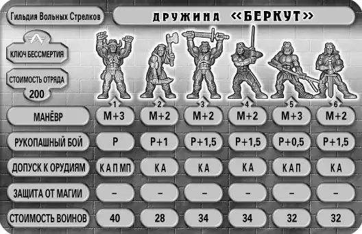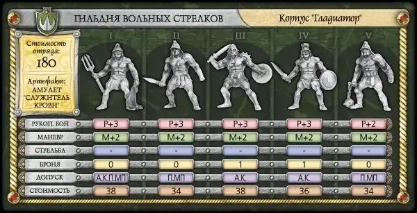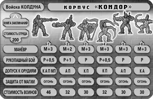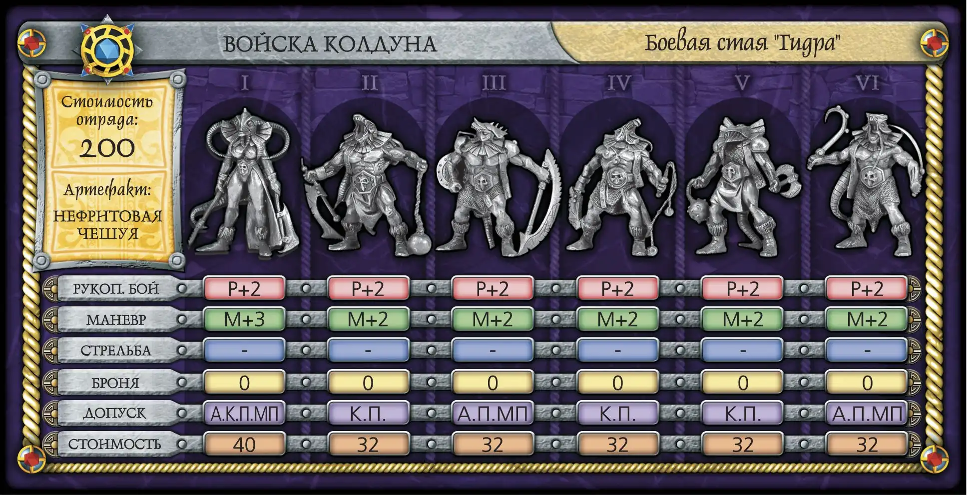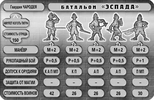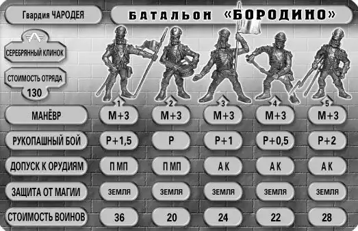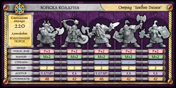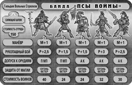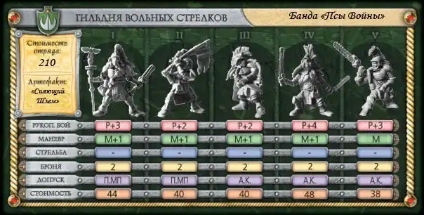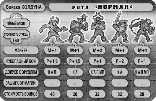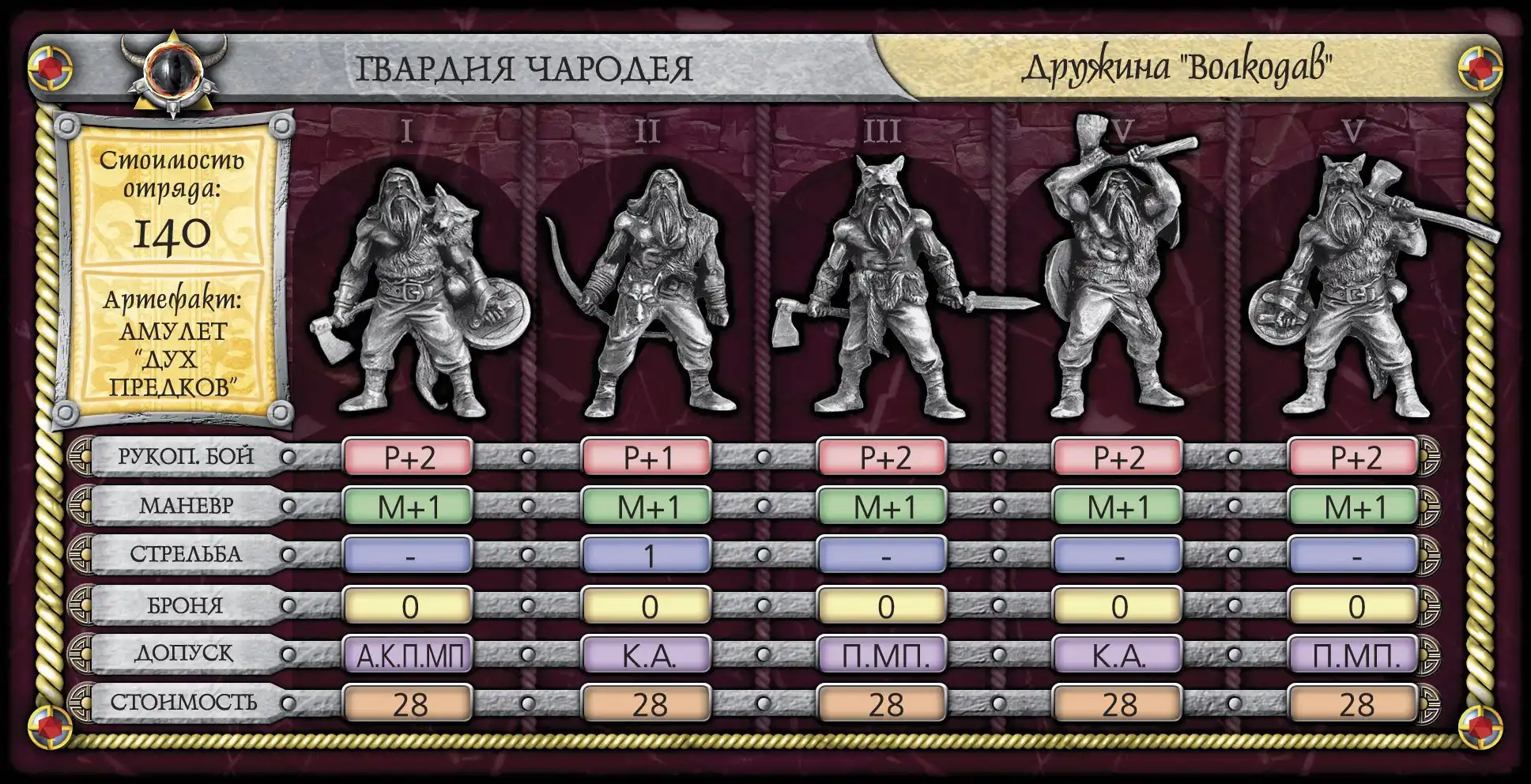 Каждый воин имеет допуск к типам орудий, защиту от магии, стоимость...