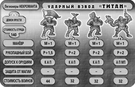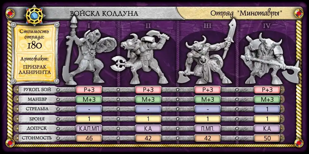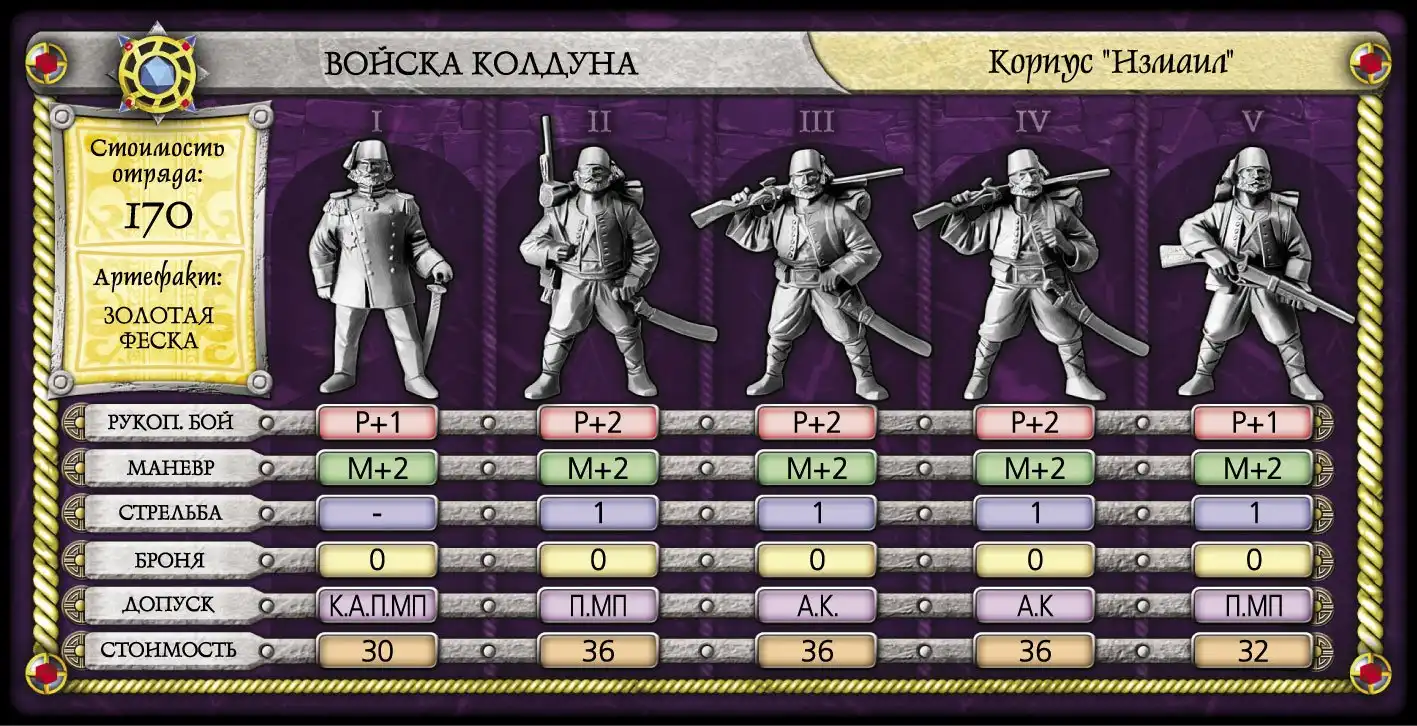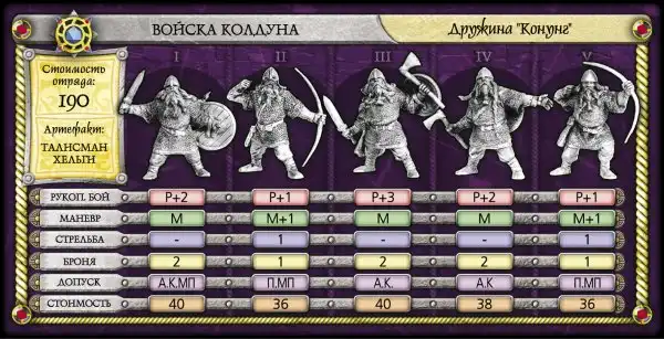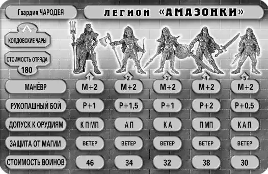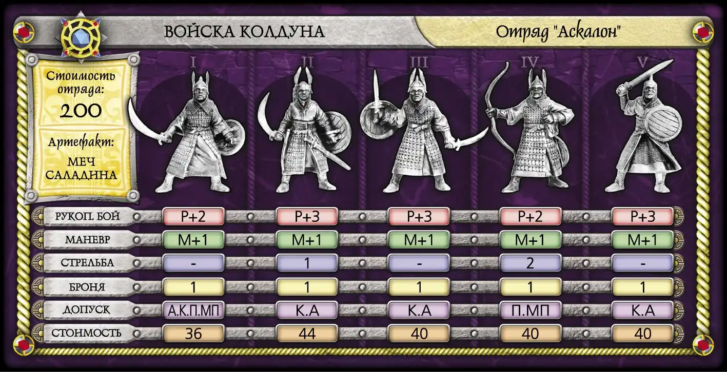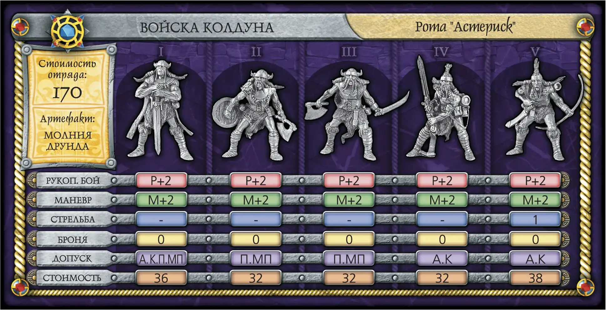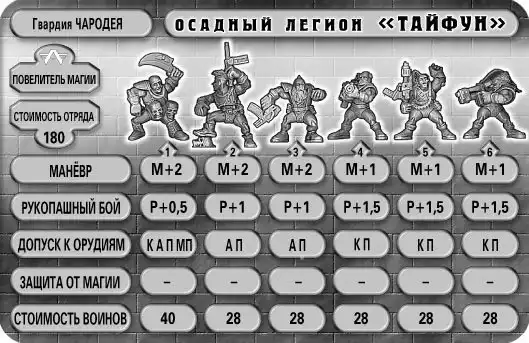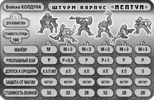Каждый воин имеет допуск к типам орудий, защиту от магии, стоимость...