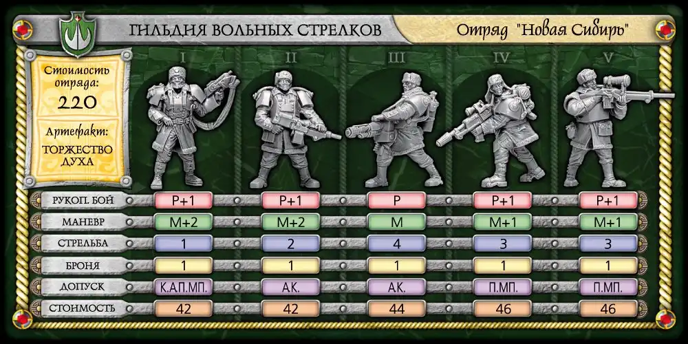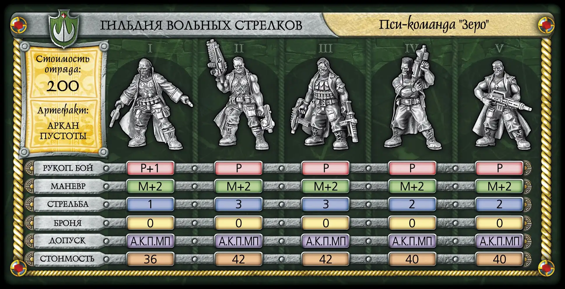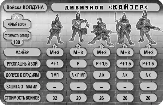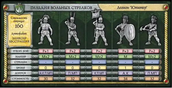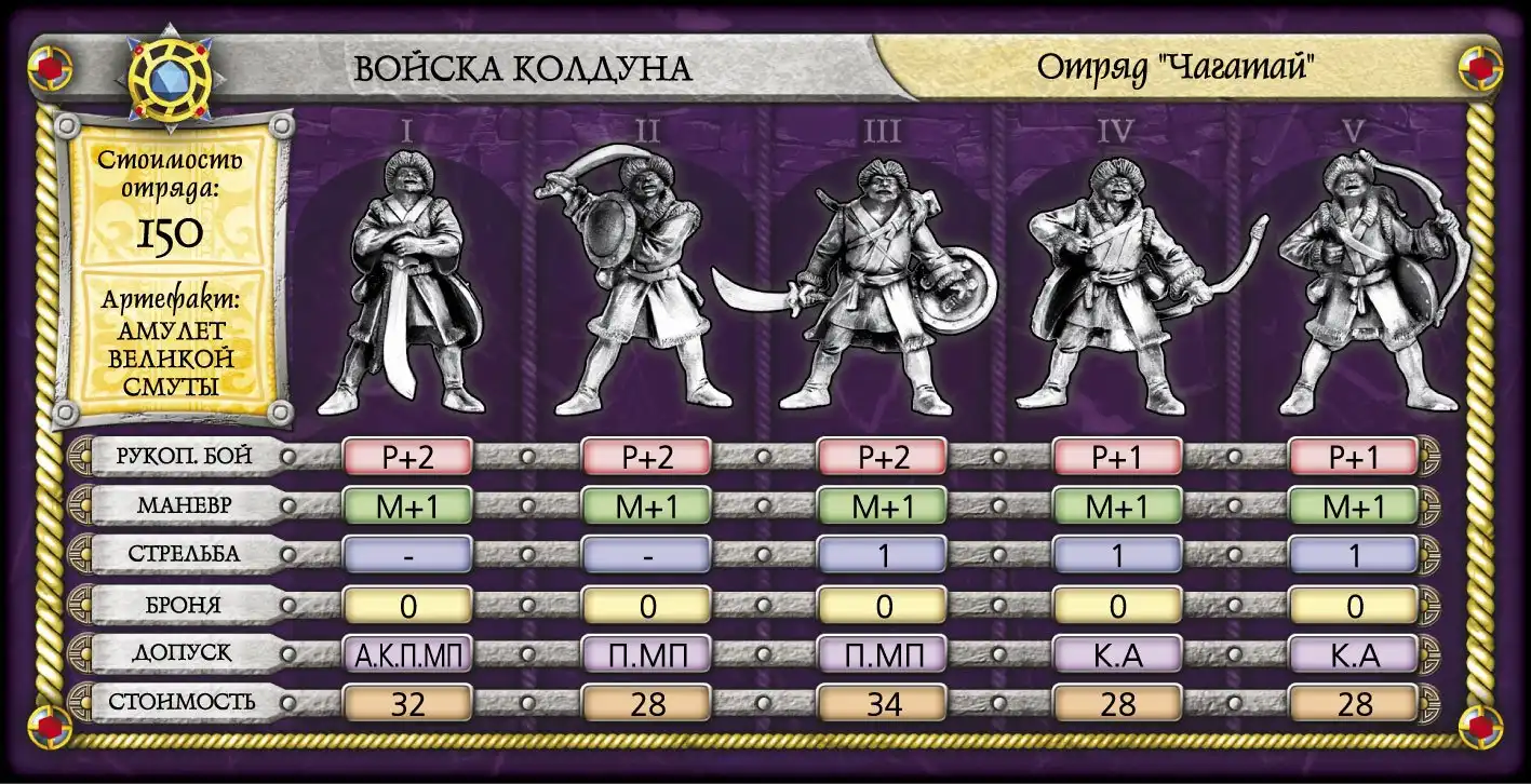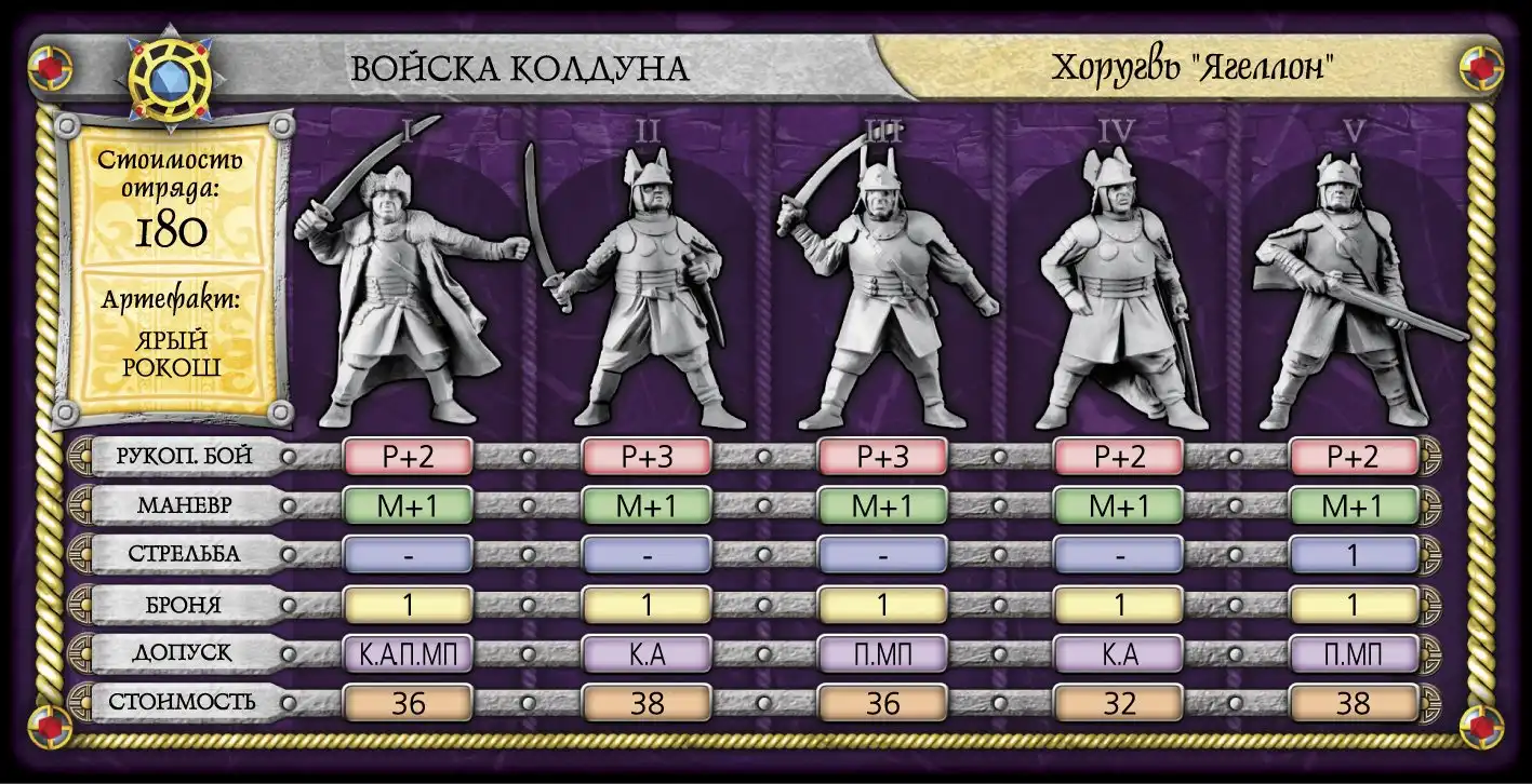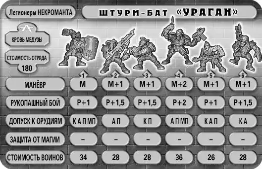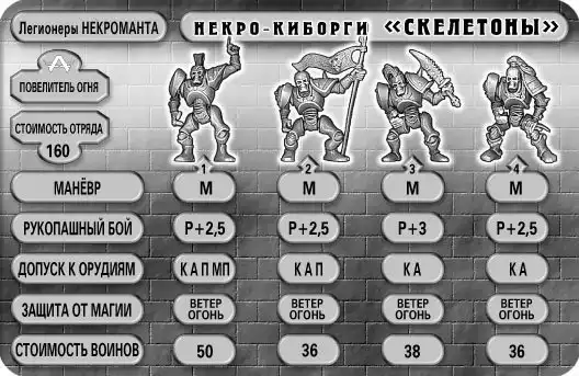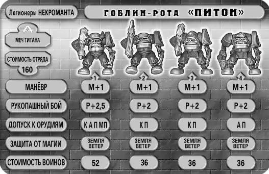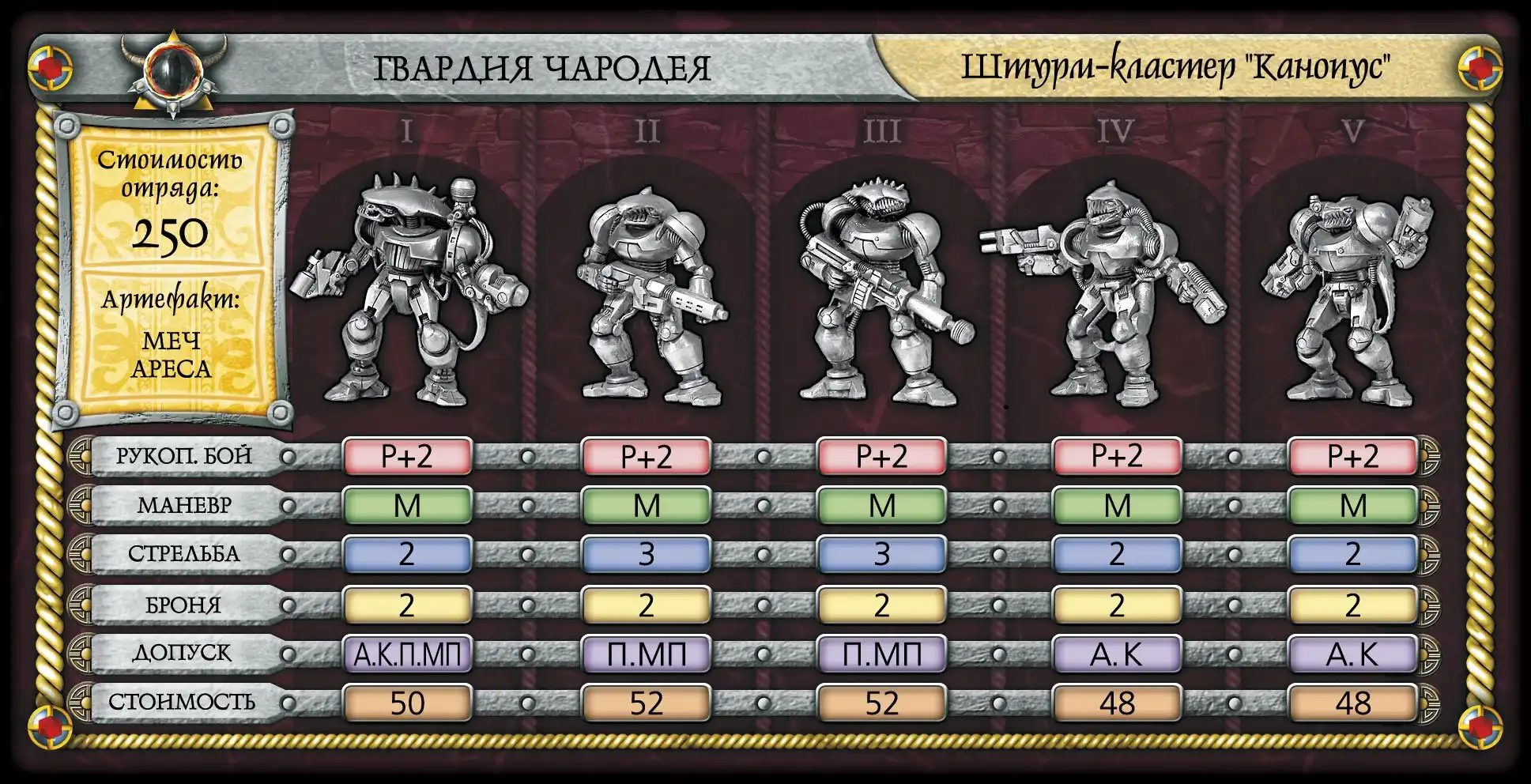 Каждый воин имеет допуск к типам орудий, защиту от магии, стоимость...