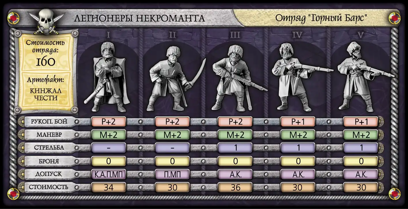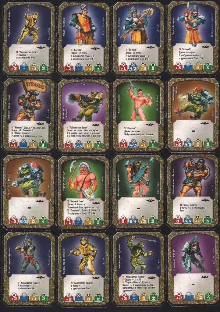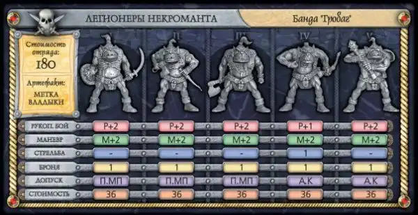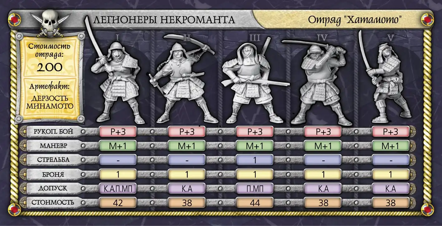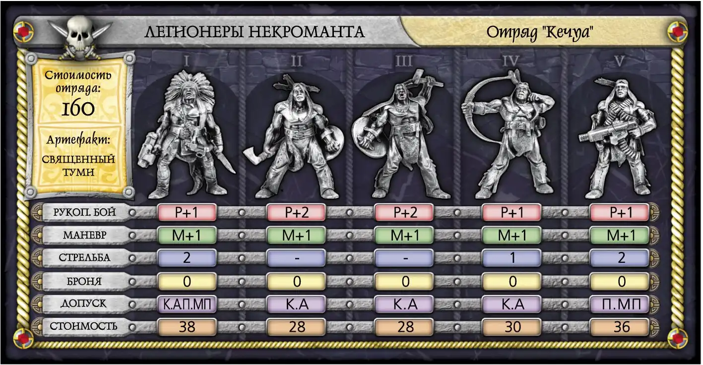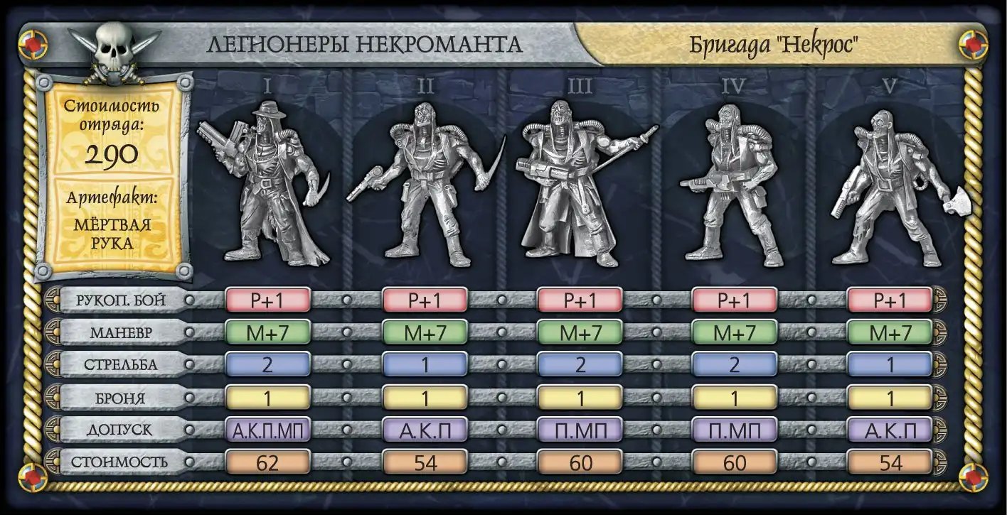 Каждый воин имеет допуск к типам орудий, защиту от магии, стоимость...