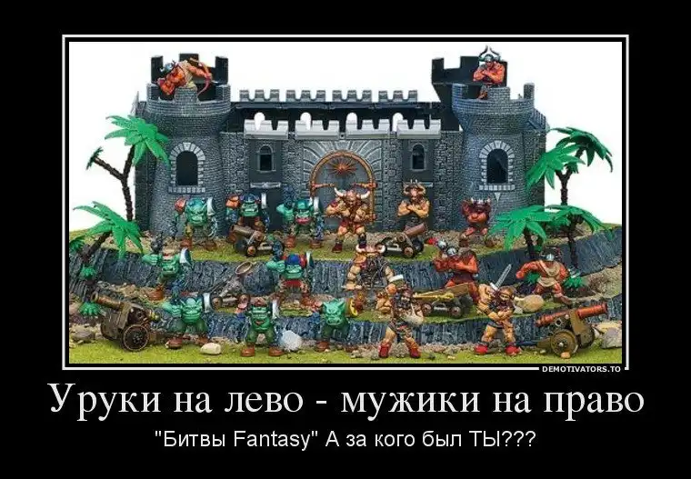 Это игровая среда "Битвы Фэнтези" - несколько десятков наборов фантастических солдатиков. Здесь есть гоблины и рыцари, мушкетеры и варвары, космические десантники и скелетоподобные монстры. Однако, не только разнообразие фэнтезийных персонажей превращает эту серию пластиковых игрушек в "варгейм". Открыв коробку набора "Битвы фэнтези", будущий игрок обнаружит, что он, в буквальном смысле, попал в фантастический мир.