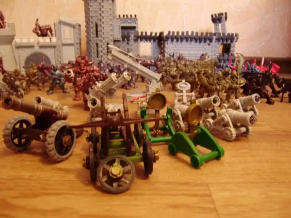Метательные машины - это не просто модели, изображающие скажем, баллисту или многоствольный ракетный миномет. Они на самом деле могут стрелять! В модели встроены пружинные механизмы, а то и резиновые "тяги" (обычная денежная резинка) для баллист и катапульт - снаряды этих машин летят на несколько метров и сбивают с ног любую фигурку из игровых наборов.