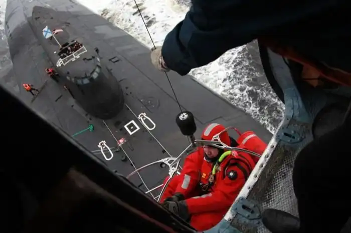 Атомный подводный ракетоносный крейсер пришел на помощь во время шторма