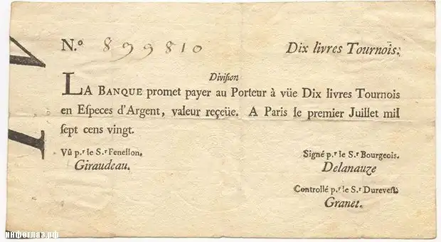 Будущему правителю Франции Ло изложил свои идеи по развитию производства, торговли и скорейшего выхода страны из финансового кризиса с помощью бумажных денег. Возможности бумажных денег он хорошо изучил в Голландии и Великобритании.